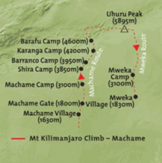 The Machame Route is a fantastic opportunity to combine mountain skills and experience. It maximises the time and options available for climbing and allows for a more leisurely pace.